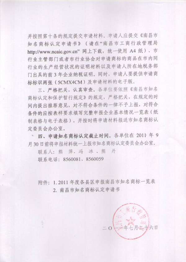 南昌市知名商標(biāo)認(rèn)定初步審查公告